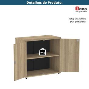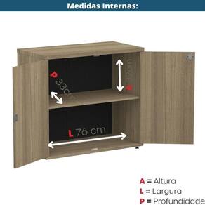 Acompanha uma prateleira interna fixa com capacidade para até 15kg, ideal para organização de documentos e materiais de uso diário. As portas são do tipo pivotante, sem dobradiças, com sistema de articulação superior e inferior, e fechadura cilíndrica tipo Yale com duas chaves, garantindo e praticidade no dia a dia.