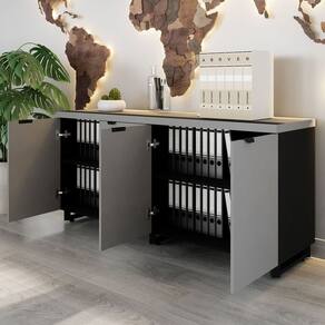 O Armário Baixo Duplo F5 Office 1,58m é ideal para organizar documentos e objetos com praticidade. Conta com 4 portas e puxadores metálicos, unindo funcionalidade e durabilidade. Pode ser utilizado em escritórios, salas de estudo ou ambientes residenciais, combinando com móveis modernos.