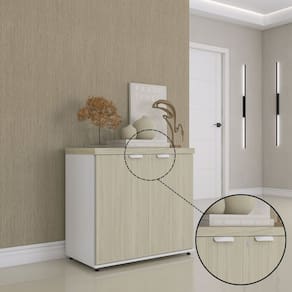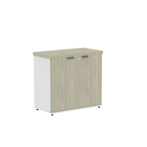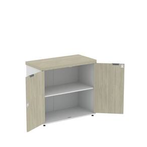 Armário Baixo para Escritório Pe40 com 2 Portas Pivotantes Branco/Castanheira Natural - Cinza