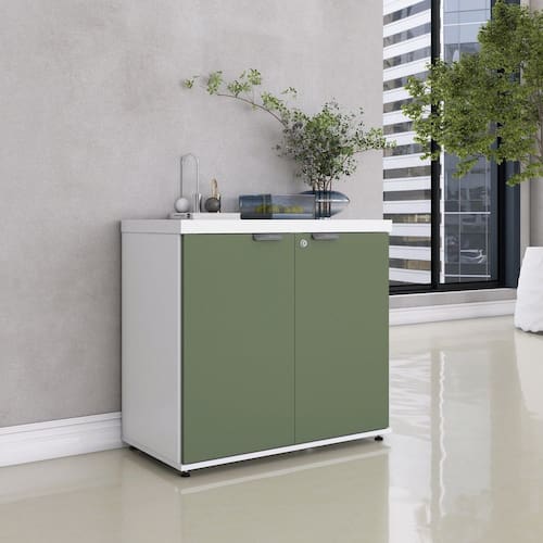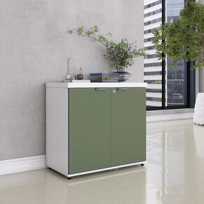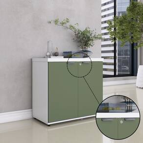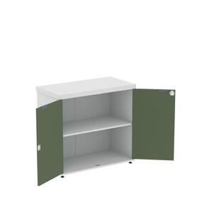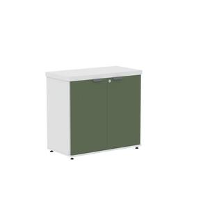 Armário Baixo para Escritório Pe40 com 2 Portas Pivotantes Branco/Salvia - Cinza