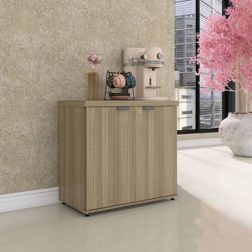 Armário Baixo para Escritório Pe40 com 2 Portas Pivotantes Noce Naturalle - Marrom