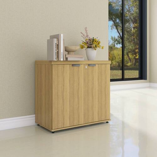 Armário Baixo para Escritório Pe40 com 2 Portas Pivotantes Samba - Cinza