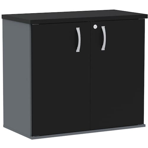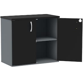 Armário Baixo PE25 Pandin 80 cm (largura) em MDP Cor Grafito e Preto com Duas portas - Cinza