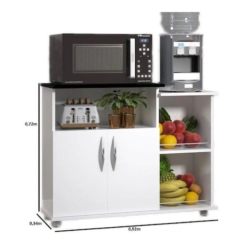 Armário Balcão Auxiliar Modernocom Tampo Na Cor Preta