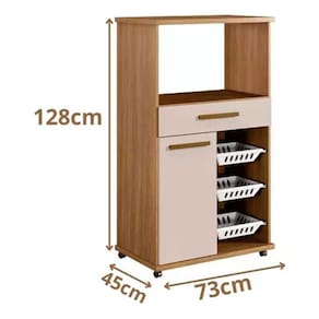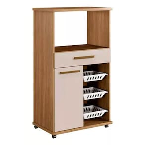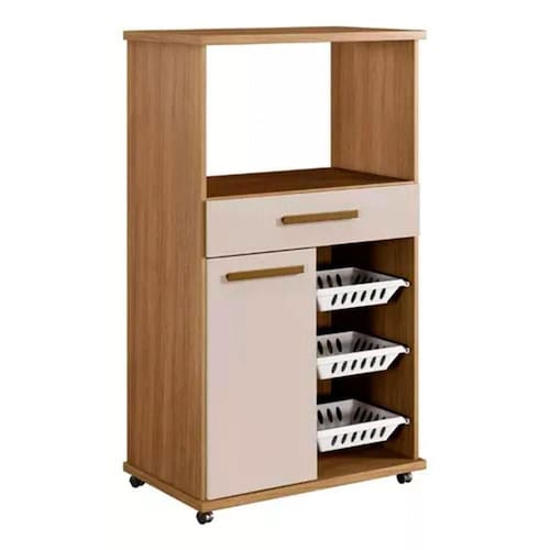 Caracteristicas: Prateleira Interna Tampo e Base 25mm Material do Puxador: Madeira Material Principal: MDF Quantidade de Portas: 1 Quantidade de Gavetas: 1 Rodizios Inclusos Corredica Telescopica Ambiente: Cozinha Suporta ate (kg): 38,15 kg Peso Maximo por Gaveta: 3 kg