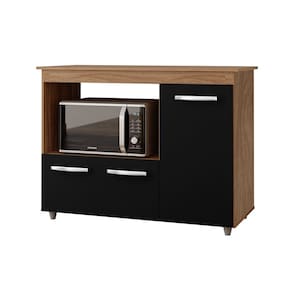Armário Balcão Multiuso para Cozinha Micro-ondas e Forno Liza 03 Portas Savana Preto Moblis
