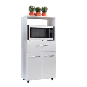 Características: Estrutura em MDP Acabamento em pintura UV 02 Portas com Dobradiças Metálicas 01 Gaveta com Corrediças Metálicas Puxadores em Plástico Cromados Pés Fixos Altura dos Pés 5cm Amplo Espaço Interno para Organizar Utensílios Nicho para Forno ou Microondas