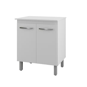 Características: Estrutura em MDP Acabamento em pintura UV 02 Portas com Dobradiças Metálicas Puxadores em Plástico Cromados Pés Plástico Amplo Espaço Interno para Organizar Utensílios
