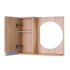 Armário para Banheiro com Espelho Redondo Carvalho com Puxador de Metal. Já vem montado, pronto para colocar na parede. É só abrir a caixa e instalar em seu banheiro. Acompanha 2 parafusos com buchas para instalar na parede.