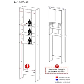 Conteúdo da Embalagem: 1 (um) Armário para Vaso Sanitário 1 (um) Kit com 1 Luminária LED