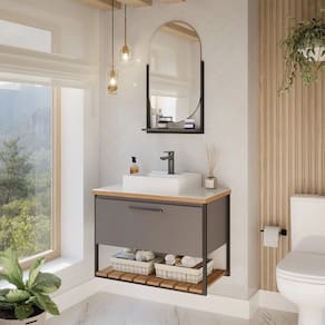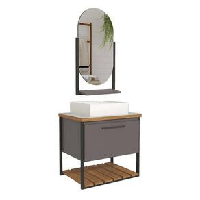 KIT Gabinete Suspenso para Banheiro com 1 Porta, Prateleiras e EspelhoModelo Gabinete: CaribeModelo Espeheira: OriCor: TitaniumCARACTERÍSTICAS:- Gabinete suspenso para Banheiro com Cuba e Espelheira desenvolvido em MDF- Acabamento em pintura BP.- Cuba em mármore sintético.- Amplo espaço interno- Porta com pistão à gás- Puxadores de alumínio.- Espelheira com estrutura em metalon, design moderno e prateleira em MDF.MEDIDAS ARMÁRIO:- Altura: 68 cm- Largura: 60 cm- Profundidade: 45 cm- Peso: 23,4 kgMEDIDAS ESPELHEIRA:- Altura: 78 cm- Largura: 44 cm- Profundidade: 13 cm- Peso: 7.5 kgFICHA TÉCNICA ARMÁRIO:- Acabamento: BP- Acabamento da Porta: BP- Acabamento da Prateleira: BP- Ambiente Principal: Banheiro- Cor: Titanium (cinza escuro)- Cor Interna: Titanium (cinza escuro)- Escala de Brilho: Fosco- Material da Porta: MDF- Material da Prateleira: MDF- Material do Puxador da Porta: Alumínio- Material Principal: MDF- Necessita Montagem: Sim- Origem do Produto: Nacional- Peso Máximo por Prateleira: 5 kg- Possui Espelho: Não- Possui Gavetas: Não- Possui Pés: Suspenso- Possui Portas: 01- Possui Prateleiras: 01- Sistema de Montagem: Parafusos e Cavilhas- Suporta Até (kg): 14 kg- Tipo de Dobradiça/Corrediça da Porta: Metálica- Tipo de Porta: Basculante- Tipo de Puxador da Porta: ExternoFICHA TÉCNICA ESPELHEIRA:- Cor: Titanium (cinza Escuro)- Acabamento: BP- Garantia (meses): 3- Tipo de pintura: Fosco- Quantidade de Prateleiras: 1ITENS INCLUSOS NA EMBALAGEM:- 1 Armário- 1 Espelheira- Kit Ferragens- Manual de MontagemCOMPLEXIDADE DA MONTAGEM:- Grau: Médio (pode ser montado por uma ou mais pessoas)OUTRAS INFORMAÇÕES- Montagem não inclusa.- Na limpeza não utilizar produtos químicos e abrasivos, usar apenas um pano umedecido, para garantir a maior durabilidade do móvel.- Os objetos que ambientam as fotos não acompanham o produto.- Antes de comprar o seu produto verifique as medidas, o local onde pretende instalar e se é necessário contratar o serviço de um profissional qualificado. Ean: 7898942621093
