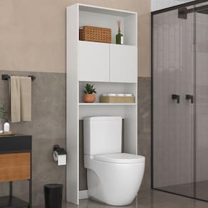 O Armário Banheiro para Vaso Sanitário 2 Portas Nina Multimóveis é produzido em MDP, que garante maior durabilidade e resistência, possui acabamento acetinado (cerca de 20% de brilho) e é ideal para espaços compactos. Com 2 portas e prateleiras, possui espaço para você organizar seus produtos de higiene pessoal, toalhas e demais itens. Desenvolvido especificamente para se adaptar aos vasos sanitários com caixa acoplada e aproveitar um espaço que até então era inutilizado, ainda pode ser montado de duas formas: com as portas no nicho superior ou central. Para maior segurança, sugerimos que o móvel seja obrigatoriamente fixado na parede.