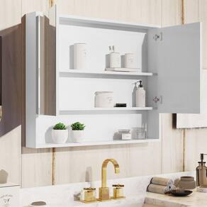 Armário Banheiro Superior Aéreo Eros 2 Portas Branco Armário De Banheiro Superior Aéreo Eros 2 Portas Medidas do produto montado: Altura: 54cmLargura: 69 cmProfundidade: 10 cmPeso: 5,42kg Características: 2 PortasPuxador no próprio móvelDobradiças metálicasNicho AparenteEspelho inclusoPrateleira Interna