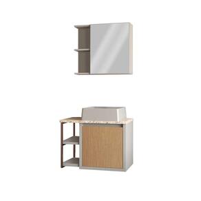 Armario Banheiro Tamisa - 60cm Fn-Mad-Am-Bisc - Kit - Gaam O Conjunto Tâmisa eleva o estilo e a funcionalidade do seu banheiro. A espelheira ampla possui prateleiras internas e externas para organizar seus itens de cuidados pessoais. O gabinete apresenta uma cuba de design inovador, combinado com cores modernas para um visual sofisticado. As prateleiras laterais e a estrutura de ferro adicionam um toque de estilo industrial-chique, oferecendo mais espaço para toalhas, produtos de limpeza ou decorações. Um móvel versátil e elegante que se destaca na decoração do ambiente. Possui: - Ampla espelheira multifuncional; - Cuba de apoio em Duratec, com cores modernas e atuais, combinando com o estilo do conjunto. - Tampo em pedra natural com dupla camada de resina impermeabilizante que bloqueia a absorção de água, óleos e outros líquidos que podem manchar a bancada; - Puxador chanfro, que adiciona um toque de elegância e facilidade de abertura; - Dobradiças anti-impacto, para um fechamento mais suave da porta; - Estrutura em Ferro, que confere durabilidade e um toque de estilo industrial-chieque; OBS.: Imagem meramente ilustrativa. MEDIDAS DOS PRODUTOS MONTADOS: *Balcão: (A x L x P) (42,0cm x 59cm x 36,5cm) Espelheira (15,5 x 48,8 x 59,0cm) Cuba (10 x 33,6 x 33,6cm) - Não acompanha torneira; - Não acompanha acessórios que ambientam a imagem; Imagens meramente ilustrativas Tempo de garantia: 3 meses. ** Preço do produto em PC **