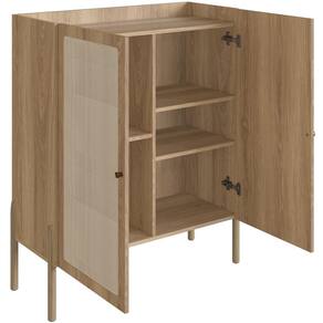 Com seu estilo que remete ao um balcão aparador, ele une funcionalidade e elegância de forma irresistível. Os pés em madeira maciça garantem durabilidade e um toque clássico, enquanto o detalhe em tela sintética traz um ar artesanal e suave. O tampo com rebaixo estilo bandeja não só é um convite a momentos de descontração, como também oferece praticidade para servir seus convidados com estilo. Ideal para armazenar suas bebidas favoritas e acessórios de bar ou até mesmo aproveitá-lo como cantinho do café, esse armário multiuso é a peça que faltava para transformar seu ambiente em um espaço acolhedor e cheio de personalidade.