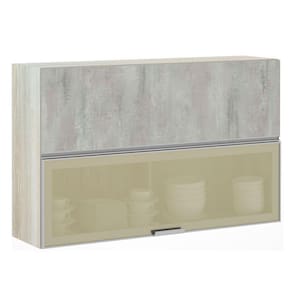 Armario Basculante Misto Luciane 120cm 1 Porta Fechada 1 Porta Alumínio Com Vidro Reflecta Lis Legno Crema Com Concreto