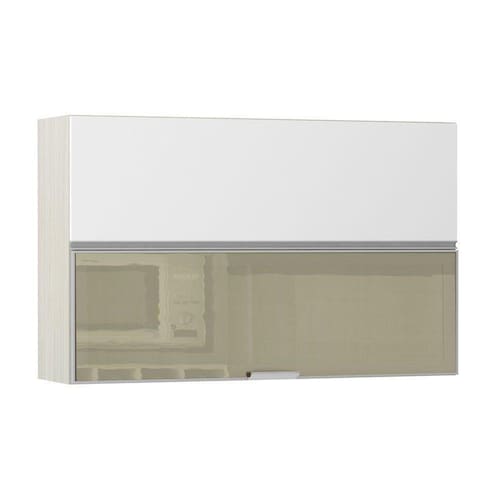 Armario Basculante Misto Luciane 120cm 1 Porta Fechada 1 Porta Alumínio Com Vidro Reflecta Lis Legno Crema Com Branco Mat