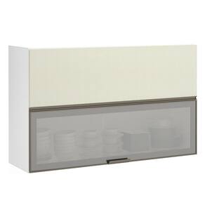 Armário Basculante Misto Perola 120cm 1 Porta Fechada 1 Porta com Vidro Reflecta Prata Luciane - Bege Claro