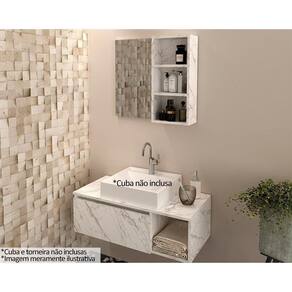 Conjunto de Banheiro Balcão Suspenso BN3601 s/ Cuba 80cm e Armário c/ Espelho BN3609 Mármore Branco - Tecno Mobili Abaixo segue os produtos do KIT: Conjunto de Banheiro Balcão Suspenso BN3601 s/ Cuba 80cm e Armário c/ Espelho BN3609 Mármore Branco - Tecno Mobili Gabinete de Banheiro Suspenso BN3601 s/ Cuba c/ 1 Porta 80cm Mármore Branco - Tecno Mobili