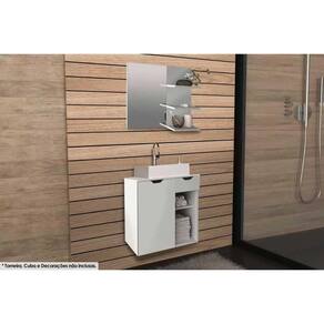 Armário C/ Balcão Banheiro Suspenso Bn3605 S/ Cuba 60cm E Espelho Bn3608 Branco - Tecno Mobili