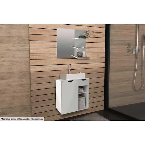 Conjunto de Banheiro Balcão Suspenso BN3605 s/ Cuba 60cm e Armário c/ Espelho BN3608 Branco - Tecno Mobili Abaixo segue os produtos do KIT: Conjunto de Banheiro Balcão Suspenso BN3605 s/ Cuba 60cm e Armário c/ Espelho BN3608 Branco - Tecno Mobili Gabinete de Banheiro Suspenso BN3605 s/ Cuba c/ 1 Porta e 1 Gaveta 60cm Branco - Tecno Mobili