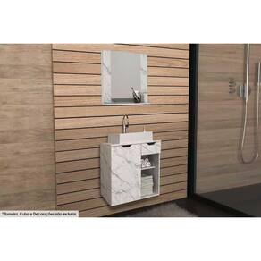 Armário C/ Balcão Banheiro Suspenso Bn3605 S/ Cuba 60cm E Espelho Bn3610 Mármore Branco - Tecno Mobili