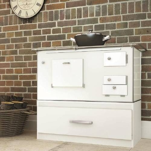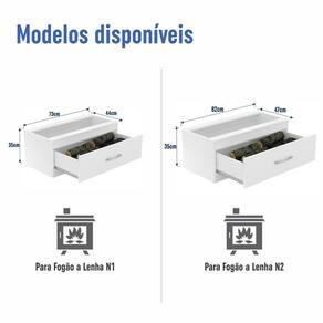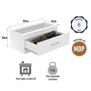 Possui uma gaveta com corrediças metálicas, ideal para guardar lenha e outros itens essenciais para o seu fogão.