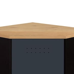 Armário de canto em aço com tampo em madeira 400, que encaixa nos cantos para melhor aproveitamento de espaço. Compõe a Presto Ábile, linha de Organizadores Modulares da Presto Sistemas de Organização, componíveis entre si, que podem ser configurados de maneira flexível e versátil, possibilitando diversas combinações.