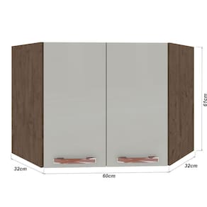 Descrição do Produto: Ambiente: Cozinha Marca: Indekes Cor: Off White / Noce Linha: Marie Material da estrutura: MDP 15mm Revestimento: Pintura ultravioleta em padrões madeirados Portas: 2 portas Conteúdo da embalagem: 1 Armário de Canto Dimensões aproximadas do produto: - Altura: 61 cm | - Largura: 73 cm | - Profundidade: 32 cm Dobradiças metálicas com regulagem, puxadores em PVC duro, parafusos e acessórios especialmente desenvolvidos para chapas de madeira, garantindo uma perfeita fixação.