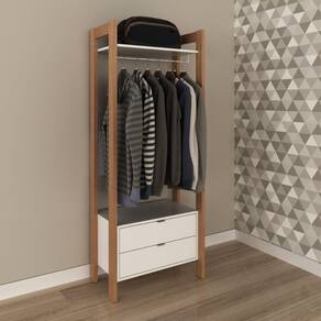 Guarda-Roupa Closet Com Cabideiro Prateleira E 2 Gavetas Az1011 Tecnomobili Amêndoa/Branco