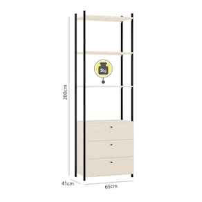SKU: 15144 RefID: 300039801 Gênero - Unissex Cor - Off White Descrição - DIMENSÕESAltura: 200 cmLargura: 65 cmProfundidade: 41 cmPeso Bruto: 33,8 KgDETALHES DO PRODUTO- 100% em MDF- Estrutura em Aço Carbono com pintura epóxi- Puxadores em poliestireno- Corrediça Telescópica- Sistema de antitombamento incluso- Pintura atóxica- Resistência e durabilidade- Material combo: Aço Carbono/MDF- Gavetas: 0- Nível de dificuldade da montagem: Difícil - Embalagem contém: 1 gaveteiro + 3 prateleiras + 4 pés Imagens meramente ilustrativas desenvolvidas em recursos 3D com possibilidade de variação sobre o produto real.Os produtos podem sofrer alterações sem aviso prévio.A decoração dos produtos é meramente ilustrativas, os itens não são comercializados pela Pura Magia. Descritivo - Armário e Closet Metalic trás à você praticidade, leveza, elegância com versatilidade, podendo ser utilizado em vários ambientes conforme sua necessidade. Pensando também no quartinho do seu be Possui Portas - Não Garantia - 6 meses Material - AÇO CARBONO/MDF Modelo - Armário Closet Metalic 002 Industrial Off White/Preto Largura - 65 Profundidade - 41 Altura - 200 Complexidade da Montagem - Difícil Necessita Montagem - Sim Suporta Até - Tampo/Prateleira: 5Kg; Gavetas: 3Kg Ambiente - Quarto Infantil Itens Inclusos - 1 GAVETEIRO + 3 PRATELEIRAS + 4 PÉS Acabamento - Pintura UV Acetinado de Alta Qualidade e Tubos em pintura epóxi Peso (kg) - 31,7 Manual de montagem - http://moveisestrela.hospedagemdesites.ws/manuais_de_montagem/30003_COMBO-002-METALIC---22A-C-03-VOL_9801_7893530125182.pdf