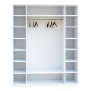 O Armário Colmeia com Cabideiro + Prateleiras + Nichos/ Expositor da Klithovit Decor, é a solução ideal para quem deseja otimizar o espaço de armazenamento em closets ou lojas de roupas. Com um design funcional e elegante, ele combina prateleiras, nichos e um cabideiro, oferecendo praticidade e estilo. Com 14 nichos laterais, 2 nichos centrais e 1 cabideiro, o armário permite uma organização eficiente de roupas, acessórios e itens decorativos, adaptando-se a diferentes ambientes. Dimensões: Altura: 1,85 m Largura: 1,50 m Profundidade: 35 cm Cabideiro: 87 cm de comprimento x 1,20 m de altura Nichos Laterais: 24 cm x 28 cm x 35 cm (AxLxP) Nichos Centrais: 24 cm x 88 cm x 35 cm (AxLxP) Material: Confeccionado em MDF de 15 mm, o armário apresenta um acabamento de alta qualidade, garantindo durabilidade e resistência ao uso diário. Montagem: O produto é enviado desmontado e inclui um manual de montagem detalhado, com todas as instruções e ferragens necessárias para facilitar a montagem. Limpeza: Para manter seu armário sempre limpo e em bom estado, utilize um pano macio e levemente umedecido com água. Evite produtos abrasivos que possam danificar o acabamento. Atenção: Itens decorativos não inclusos, transforme seu espaço com o Armário Colmeia, unindo organização e estilo de forma prática! A montagem é de responsabilidade do comprador. Boas Compras! Klithovit Decor Marca: KLITHOVIT DECOR
