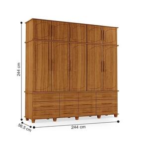 Esse Armário conta com um design clássico e simples, somando na decoração de seu quarto ou closet, com o espaço amplo para você se organizar. Ele conta 5 portas maiores, 12 gavetas, 2 prateleiras internas, varal para cabides e armário superior com 5 portas.