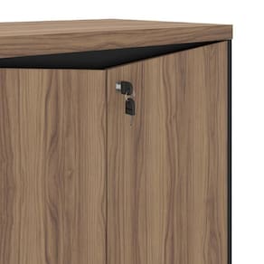 Ela possui um design marcante, com Tampo em Tamburato de 37mm e porta com elegante recorte em Y. Possui três prateleiras, sendo a primeira e a terceira com regulagem de altura e chave para travamento das portas.