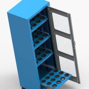 Conteúdo da embalagem: 1 Armário com 4 Prateleiras porta cone ISO50 porta visor de acrilico para 48 pecas ARM061A CMB