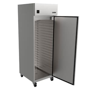 O Armário Controle de Fermentação Venâncio 20 Esteiras 127V VAF20T-22435é um equipamento quepermite controlar o crescimento da massa de pães, bolos e outros produtos de panificação. Ele pode ser utilizado nafunção de refrigeração, para retardar o crescimento da massa, ou na função de aquecimento, para acelerar o crescimento da massa. O armário temcapacidade para até 500 pães e suporte para 20 esteiras de 58x68 cm. Ele temisolamento térmico em poliuretano injetado, com densidade média de40 kg/m e espessura de 30 mm, que garante uma melhor conservação da temperatura interna. O armário tem umsistema de refrigeração por ar forçado, localizado na parte superior do equipamento, e umsistema de aquecimento com duas resistências elétricas, sendo uma na parte superior e outra dentro da caixa de evaporação. O equipamento contém umcompressor com gás refrigerante R290, um fluido natural, sem impactos negativos na camada de ozônio e com alta eficiência energética. O armário émonofásicoe está disponível natensão de 127 V. Ele tem umsistema de vapor automático, localizado na parte superior externa, composto de reservatório com capacidade de 3 litros de água, equipado com boia mecânica e caixa de evaporação com resistência interna. Essesistema evita o ressecamento dos alimentose mantém a umidade ideal. O armário tem umcontrolador digital multifunções, equipado combateria de até 72 horas de duração, que permite programar as funções derefrigeração, aquecimento e vaporização. O armário temcantos sanitários para facilitar a limpeza internae fundo interno em aço inoxidável 430. Além disso, é equipado com rodízios super resistentes para facilitar o deslocamento.