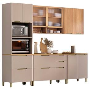 Este Armário de Cozinha alia design sofisticado e funcionalidade, com móveis que apresentam detalhes arredondados, proporcionando um visual suave, seguro e confortável para o uso diário.