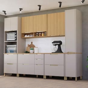 Armário Cozinha 6 Peças CP02 e Tampo Marina Cinammon/Freijó L01 - Mpozenato