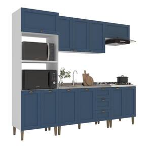 Armário Cozinha Americana Modulada Completa 260cm 5 Peças Com Balcão Multimóveis Cr20495 Branco/Azul