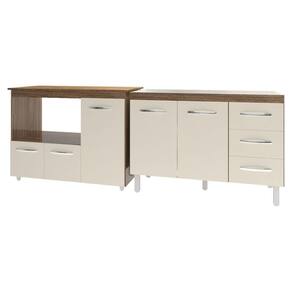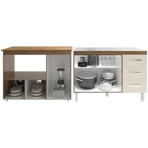 Armário Cozinha Balcão Gabinete De Pia 120 Cm Bruna E Balcão Lilian Para Microondas E Forno Elétrico Savana Off White O Kit Balcão para Pia 118 cm Bruna e Balcão para Micro-ondas e Forno Elétrico Lilian oferece uma solução completa e elegante para a sua cozinha. Com um design moderno e funcional, este conjunto é ideal para quem busca organização e estilo no ambiente culinário. Características do Balcão de Pia Bruna 118 cm: Altura: 83,5 cm (com pés) | 69 cm (sem pés) Largura: 118 cm (ideal para pia de 120 cm) Profundidade: 50 cm Material: MDP (madeira) Portas: 2 Gavetas: 3 Prateleiras: 1 Puxadores: 5 plásticos cromados Pés: 5 reguláveis de plástico (altura: 16,5 cm, ajustáveis até 18 cm) Corrediças: Metálicas Acompanha tampo: Não Indicações de Uso: Cozinha