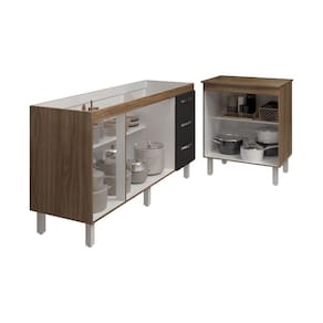 Armário Cozinha Balcão Gabinete De Pia 160 Cm Estela E Balcão Jane Para Microondas Ou Forno Elétrico Savana Preto Descubra o Kit Balcão de Pia 160 cm + Balcão para Microondas ou Forno Elétrico, a escolha perfeita para renovar sua cozinha com estilo e funcionalidade. O balcão de pia oferece 3 portas e 3 gavetas, proporcionando amplo espaço para organizar seus utensílios de maneira prática. Já o balcão para cooktop conta com duas portas, ideal para otimizar o espaço e facilitar o seu dia a dia. Feitos em MDP com acabamento elegante, os puxadores cromados e os pés reguláveis garantem durabilidade e fácil nivelamento. Sua cozinha mais organizada, moderna e prática!