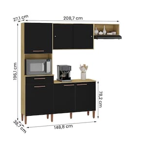 Marca: Atualle Móveis | Altura: 197 cm | Largura: 209 cm | Comprimento: 39 cm | Altura Embalado: 16,2 | Largura Embalado: 58,7 | Comprimento Embalado: 152,9 | Peso: 103,76 | Peso Embalado: 103,76 | Estado de Origem: SP | Material: MDP | Modelo: Armário Cozinha com Balcão Pop 6p 1g | Descrição do Tamanho: 197 x 209 x 39 cm | Garantia em meses: 03 meses de garantia para defeito de fabricação. | Precisa de montagem?: Sim | Tipo de móveis de cozinha: Cozinha Completa | É kit: Não | Altura do armário: 197 cm | Materiais do corpo: MDP | Fonte do produto: Brasil | Modelo detalhado: Armário Cozinha com Balcão Pop 6p 1g | Profundidade do balcão: 39 cm | Material das corrediças: Metal | Com prateleiras: Sim | Material das alças: Plástico | Quantidade de portas: 6 | Estilo: Moderno | Altura do balcão: 78,2 cm | Profundidade do armário: 27,1 cm | Quantidade de gavetas: 1 | Materiais das portas: MDP | Quantidade de peças: 1 | Linha: Cozinha | Largura do balcão: 148,8 cm | Largura do armário: 208,7 cm | Inclui tampo: Sim | Condição do item: Novo | Código ANVISA (32481): Não se aplica | Código da Homologação ANATEL (32495): Não se aplica | Código INMETRO (32486): Não se aplica | Código MAPA (32485): Não se aplica | Baterias são necessárias?: Não | Certificação de teste externa: Não aplicável | Componentes incluídos (included_components): Cozinha Pop com balcão e manual de montagem | Número da peça (part_number): 27480 | Número de caixas (number_of_boxes): 2 | Número do Modelo (model_number): 27480 | Principais Características do Produto (bullet_point#0): Possui 2 portas com corrediças metálicas no vão da peça | Principais Características do Produto (bullet_point#1): Possui pés com regulagem | Principais Características do Produto (bullet_point#2): Possui 1 gaveta com corrediças metálicas | Quantidade de Itens (number_of_items): 1 | É frágil?: Sim | Inclui manual de montagem: Sim | Cor: Wood Madeirado/Preto Fosco
