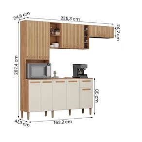 Marca: Atualle Móveis | Altura: 207 cm | Largura: 235 cm | Comprimento: 41 cm | Altura Embalado: 17,8 | Largura Embalado: 62,9 | Comprimento Embalado: 176,8 | Peso: 63,52 kg | Peso Embalado: 63,52 | Estado de Origem: SP | Material: MDP | Modelo: Armário Cozinha com Balcão Ravena 10p 1g | Descrição do Tamanho: 207 x 235 x 41 cm | Garantia em meses: 03 meses de garantia para defeito de fabricação. | Precisa de montagem?: Sim | Tipo de móveis de cozinha: Cozinha completa | É kit: Não | Altura do armário: 207,4 cm | Materiais do corpo: MDP | Fonte do produto: Brasil | Modelo detalhado: Armário Cozinha com Balcão Ravena 10p 1g | Profundidade do balcão: 41,3 cm | Material das corrediças: Metal | Com prateleiras: 5 | Material das alças: Plástico | Quantidade de portas: 10 | Estilo: Moderno | Altura do balcão: 85 cm | Profundidade do armário: 24,6 cm | Quantidade de gavetas: 1 | Materiais das portas: MDP | Quantidade de peças: 1 | Linha: Cozinha | Largura do balcão: 163,2 cm | Largura do armário: 235,3 cm | Inclui tampo: Sim | Condição do item: Novo | Código ANVISA (32481): Não se aplica | Código da Homologação ANATEL (32495): Não se aplica | Código INMETRO (32486): Não se aplica | Código MAPA (32485): Não se aplica | Baterias são necessárias?: Não | Certificação de teste externa: Não aplicável | Componentes incluídos (included_components): Cozinha Ravena com balcão e manual de montagem | Número da peça (part_number): 27488 | Número de caixas (number_of_boxes): 2 | Número do Modelo (model_number): 27488 | Principais Características do Produto (bullet_point#0): Possui pés com regulagens | Principais Características do Produto (bullet_point#1): Possui 10 portas com dobradiças metálicas | Principais Características do Produto (bullet_point#2): Possui 1 gaveta com corrediças metálicas | Quantidade de Itens (number_of_items): 1 | É frágil?: Sim | Inclui manual de montagem: Sim Cor: Canelato+3D Canelato/Off White