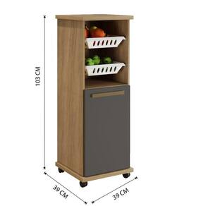Armário Cozinha Com Fruteira Paraná 1 Porta 1 Prateleira 2 Cestos Arte Móveis Cinamomo/grafite A Fruteira Paraná é prática e versátil, pois tem um design compacto e multifuncional. Conta com 02 cestos de plásticos removíveis para você colocar as frutas e legumes. Os pés são em rodízios possibilitando mover para todos os lugares. Possui uma porta e uma prateleira o que faz da organização de objetos, condimentos e utensílios muito mais prática. Altura: 104 cm Largura: 39 cm Profundidade: 39 cm Garantia: 3 Meses Material da estrutura: MDP/MDF Acabamento: Pintura de Portas: 01 de Prateleiras: 01 de Gavetas: N/I de Cestos: 02 Possui vidro: Não Possui rodízio: Sim Observações: - Todos os produtos têm três (03) meses de garantia fornecida pelo fornecedor - As imagens são meramente ilustrativas, os objetos que ambientam as fotos não acompanham o produto. - Pode haver alguma diferença de tonalidade entre a foto e o produto, devido ao tratamento de imagens e a calibração do monitor - Em caso de divergências de informações, o preço válido será o informado no carrinho de compras - A é realizada por transportadora, não nos responsabilizamos, no ato da por desmontagens, subir escadas/elevadores ou por guincho para apartamentos - Eventuais despesas são de responsabilidade do cliente - Confira as dimensões dos volumes e certifique-se de que passará normalmente por supostos elevadores, portas, escadas ou corredores - Ao receber a mercadoria, verifique as condições da embalagem, caso haja alguma , com nosso - Nossa empresa não se responsabiliza pela montagem dos produtos, mas todos os produtos possuem manual de montagem. Recomendamos que a montagem seja feita por de sua confiança. Ean: 7898663318135