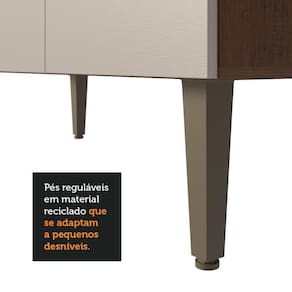 Materiais de alta qualidade: Equipado com corrediças e dobradiças metálicas, puxadores com textura no estilo ponto e pés ajustáveis em material reciclado, garante durabilidade e funcionalidade.