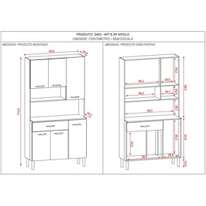 Conteúdo da Embalagem: 1 Armário de Cozinha, Kit Ferragem, Manual de Montagem