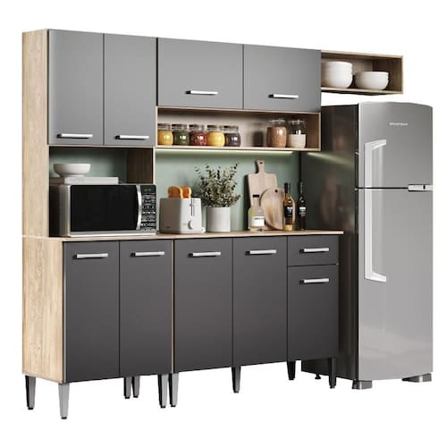 A Cozinha Compacta Daiana da Carraro é o item perfeito para quem está procurando funcionalidade, organização e estilo para ambientes compactos. O produto é composto por uma torre quente de micro-ondas, um balcão de pia com gaveteiro, um armário aéreo de 2 portas com espaço para porta temperos e um nicho.