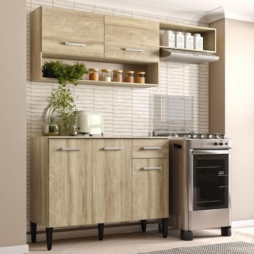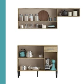 A Cozinha Compacta Mabel da Carraro é o item perfeito para quem está procurando funcionalidade, organização e estilo para ambientes compactos. O produto é composto por um balcão de pia com gaveiteiro e um armário aéreo de 2 portas com nicho e porta temperos.