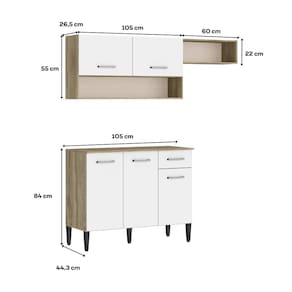 Medidas do balcão:Largura: 105 cm | Altura:84,5 cm | Profundidade:44 cm