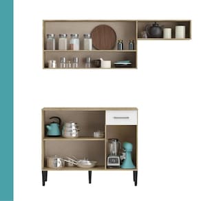A Cozinha Compacta Mabel da Carraro é o item perfeito para quem está procurando funcionalidade, organização e estilo para ambientes compactos. O produto é composto por um balcão de pia com gaveiteiro e um armário aéreo de 2 portas com nicho e porta temperos.